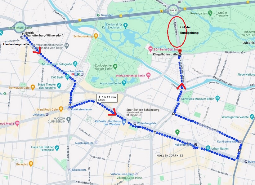 1.) Zum Demo-Umzug: Wir treffen uns am 03.08. um 11:00 Uhr am Startpunkt des Umzuges auf der Hardenbergstraße, nahe Ernst-Reuter-Platz (s. Google >>). Dort findest du uns an der Spitze des Zuges (am Südende des Aufzuges) mit unserem Handwagen von "Unsere Verfassung e.V." - Der Weg des Umzuges: (1)