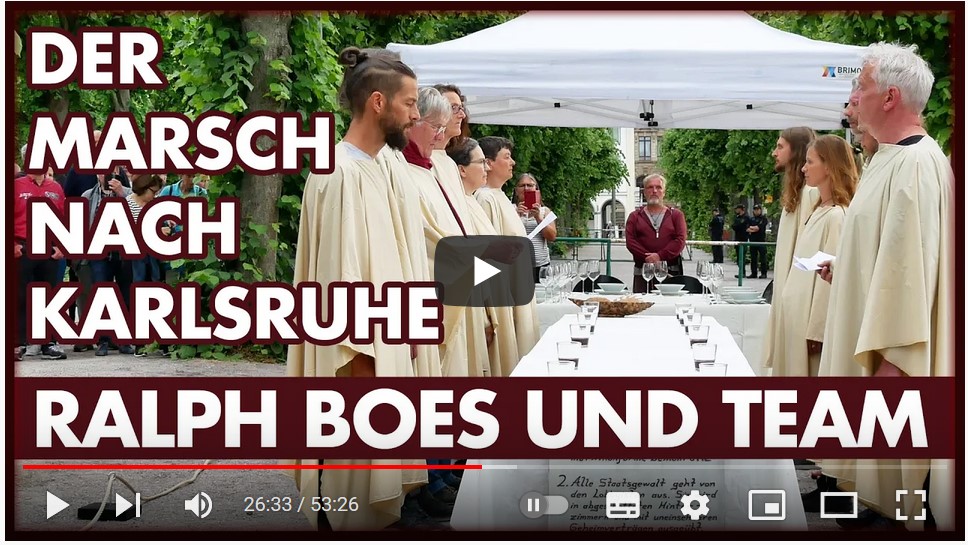 D.h., es wird nach dem Zug nach Karlsruhe einen Marsch zum Chiemsee, zum Ursprungsort des Grundgesetzes geben, an dem ein Akt der Erneuerung der Bundesrepublik an ihren eigenen Idealen als Akt der Erhebung des Grundgesetzes zur Verfassung begangen werden soll.