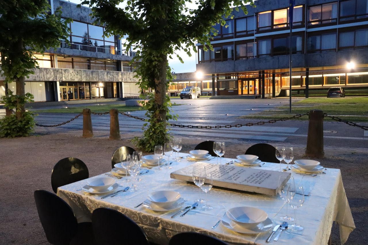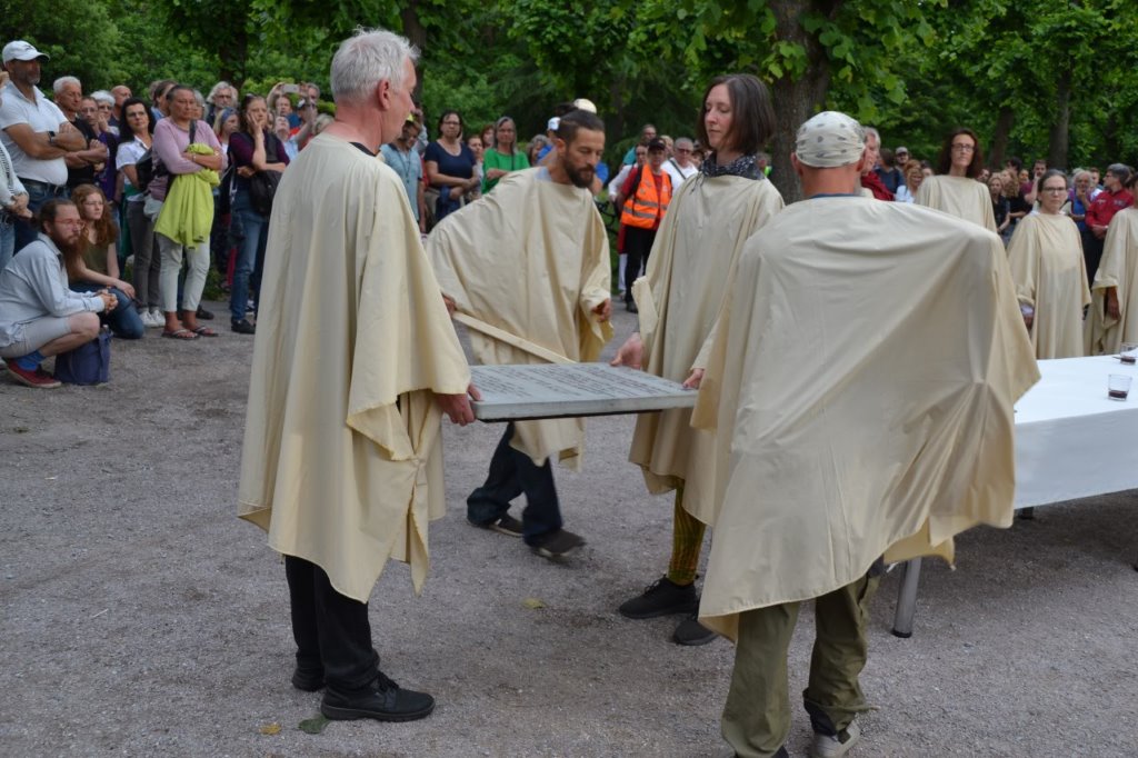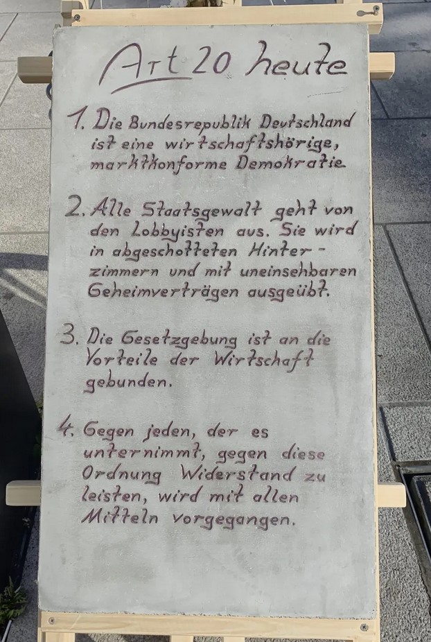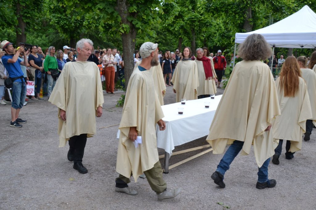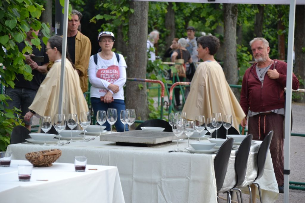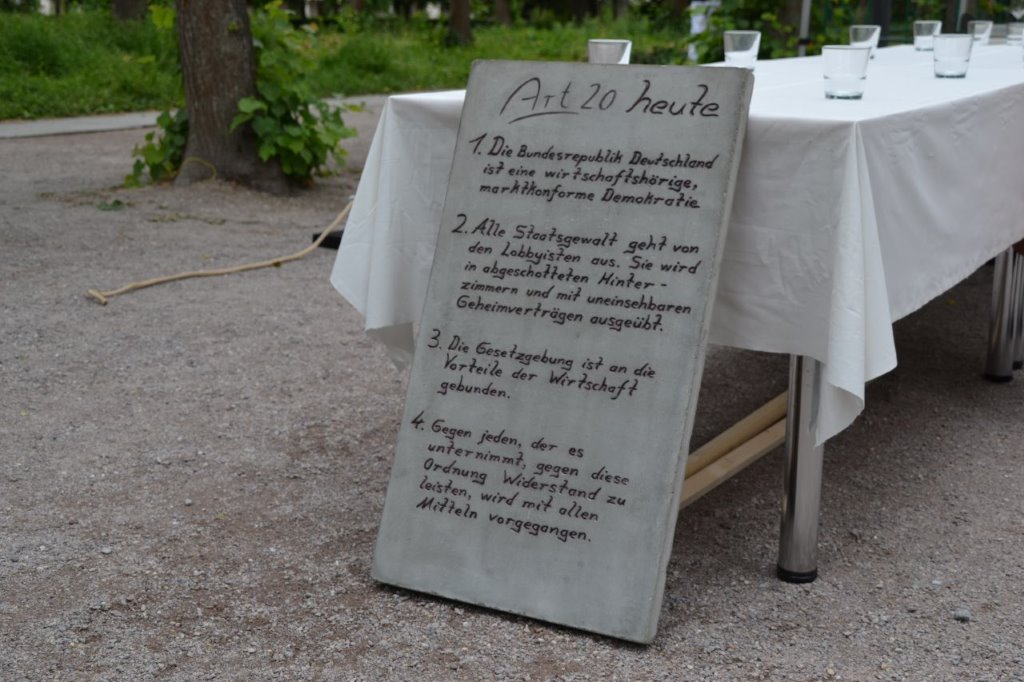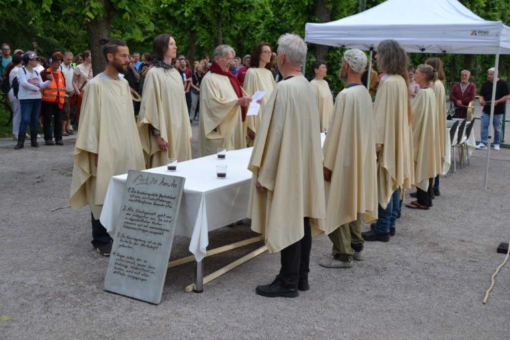 Nachdem wir das Grabmal des Grundgesetzes zu Fuß vom Bundestag in Berlin zum Bundesverfassungsgericht in Karlsruhe gebracht hatten und das Bundesverfassungsgericht unsere Einladung zum gemeinsamen Abendessen abgelehnt hatte, haben wir uns für das Event am Geburtstag des Grundgesetzes am 23.05.2022 etwas besonderes überlegt: Hier sind die Bilder vom Dinner ohne Gericht |